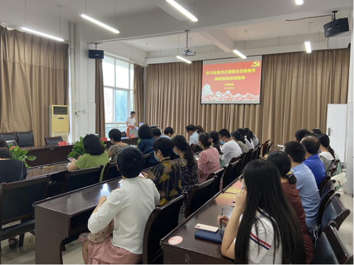 8月3日下午,护理学院在诚信4号楼B317会议室召开教职工会议,传达学习河南省委书记楼阳生莅鹤调研讲话指示精神。护理学院党总支宣传委员李家阳带领大家详细学习了楼书记到我市调研产业集群发展、科技创新、人才引育、防汛救灾、疫情防控等工作的重要讲话,号召大家全面贯彻市委书记马富国对学习楼书记讲话指示精神的要求,深刻领会讲话指示的思想观点、思路举措和工作方法,高效推进本科院校申建。护理学院党总支副书记周志红强调,接下来各支部、各教研室要分别组织开展学习研讨,将学习贯彻讲话精神同“能力作风建设年”结合起来,努力把学习成效转化为干事创业、推动学院发展的强大动力。