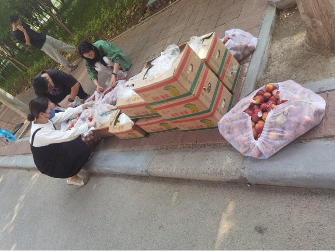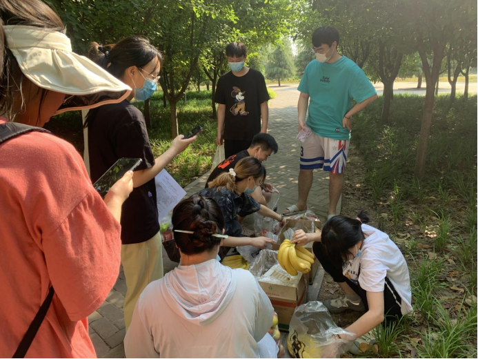当天,护理学院一大早就将香蕉和桃子摆放在海棠园宿舍旁树荫下,考生做完核酸检测后以辅导员为单位领取水果,清点、分发等工作组织有序,领取现场秩序井然。同学们脸上洋溢着幸福的笑容,节日氛围满满。