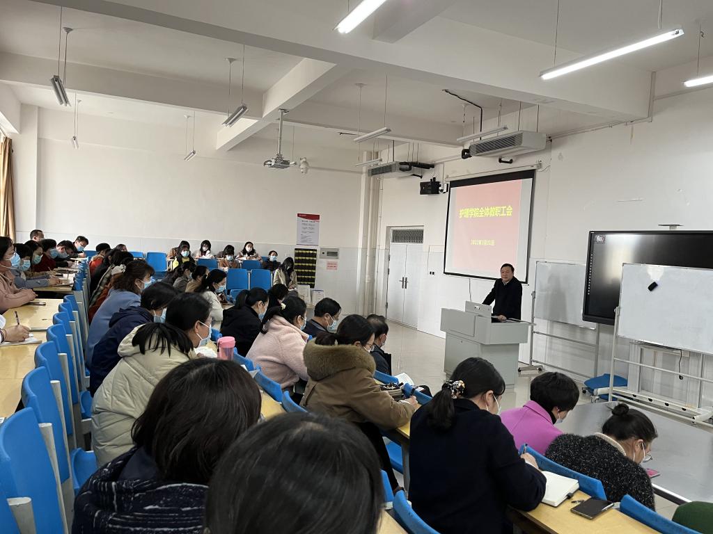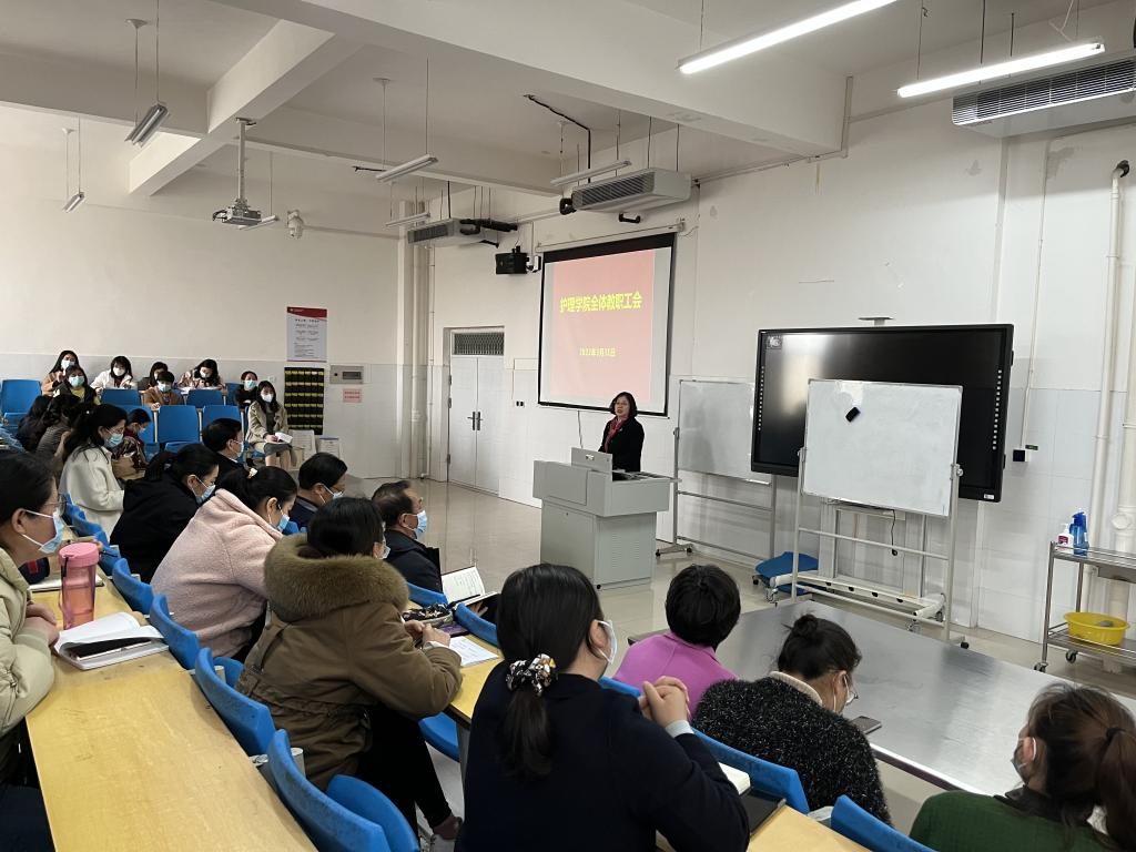 3月31日下午,护理学院在A305召开全体教职工大会,学习传达河南省教育厅疫情防控工作会议精神,护理学院党总支书记苏丽秋主持会议。