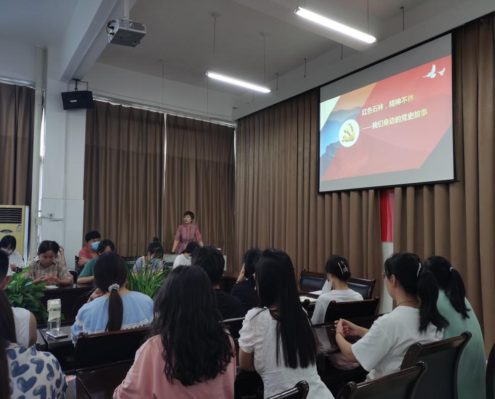 为加强对学生百年党史和革命传统教育,弘扬革命精神,传承红色基因,6月21日下午,护理学院党总支副书记周志红以“红色石林,永垂不朽”为主题为护理学院预备党员上党课,引导同学们重温那段坎坷的革命历程,真切体会当年艰苦卓绝的斗争环境下,革命先烈们不怕牺牲,勇往直前的爱国主义精神。