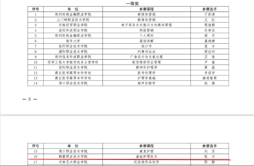 5月15日,河南省教育厅发布“关于2022年河南省高等职业教育课程思政教学创新大赛拟获奖名单的公示”,我院教师张方喜获一等奖,为护理学院取得了优异的成绩。