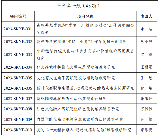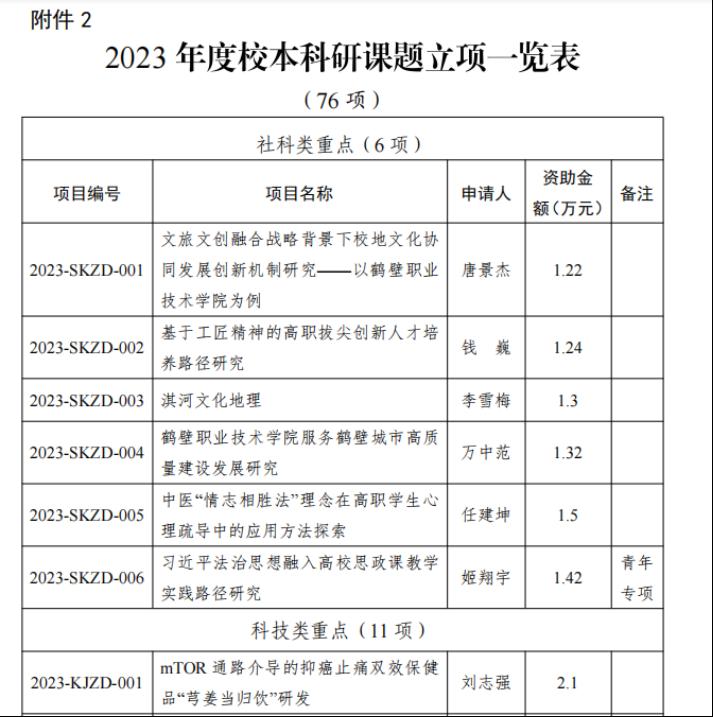 5月9日,党政综合办公室公布了2023年度校本科研课题立项结果,我院共立项建设重点课题2项、一般课题6项,立项数量及质量均创近年之最,实现了我院社科类重点课题、科技类重点课题“零”的突破。