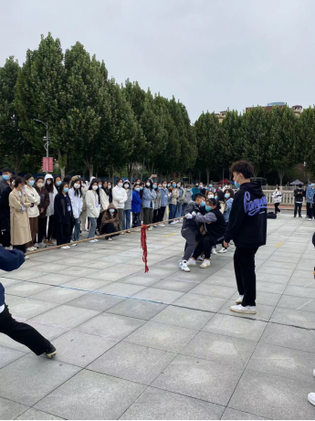 为丰富校园文化生活,提升学生的身心健康水平,10月4日护理学院举行了“喜迎党的二十大,欢度国庆节”系列校园活动之拔河比赛。