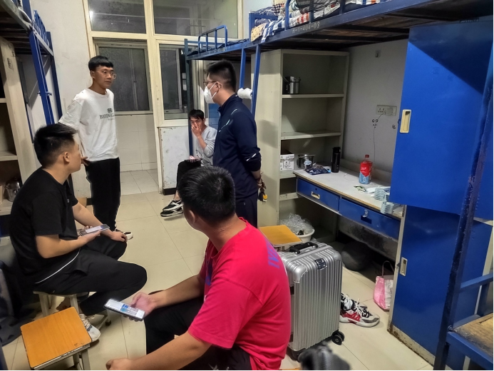 走访过程中,老师们在宿舍中与同学们亲切交谈,详细询问同学们在校生活、学习状况,提醒同学们注意用电用水安全、保持卫生整洁,增强安全意识,强化防盗、防骗意识,同时,了解了同学们国庆假期安排,叮嘱同学们要遵循学校疫情防控规定,做好防护措施,强调了佩戴口罩的重要性和必要性,提醒同学们认真做好每日健康打卡等常态化疫情防控相关工作。老师们还建议同学们,根据自身情况制定合理的学习计划,合理分配时间和精力,注意劳逸结合,通过自己的努力实现全面发展。