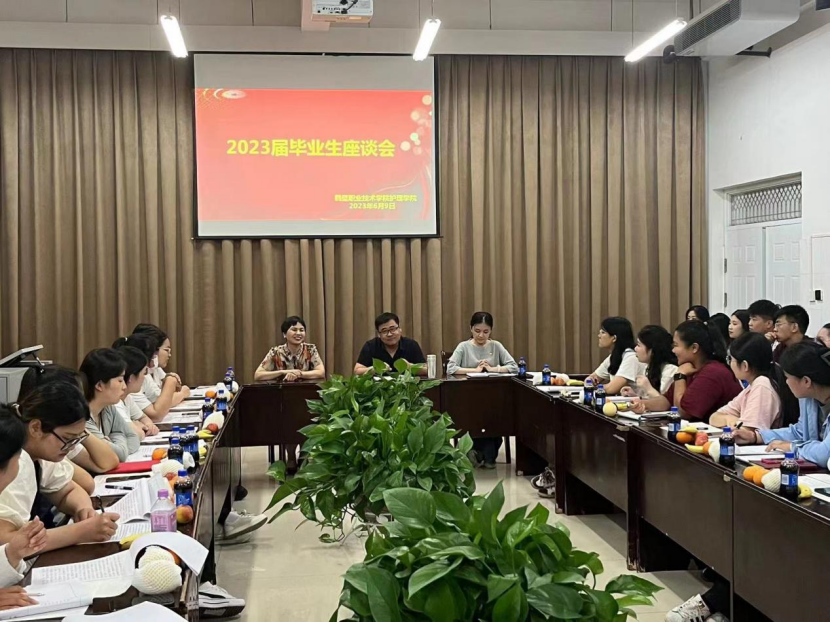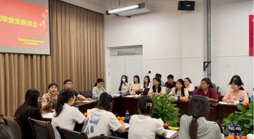 座谈会中,第一项,护理学院院长、书记与毕业生代表亲切交流,毕业生们对学院的培养与关怀表示感谢,对严谨授课的教师表达了无尽的感恩之情。同时,对学校校园生活、教育教学提出了宝贵的意见建议。最后,专升本录取学生分享了备考经验。