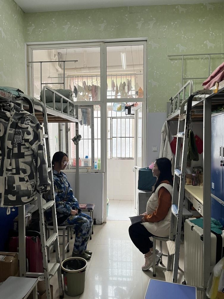 情系学生,关怀入寝。天气转凉,不少学生出现倦怠现象,尤其新生面对军训的辛苦出现消极情绪,辅导员老师到公寓走访,近距离聆听学生心声,积极引导学生面对困难,同时加强冬季用电安全教育。