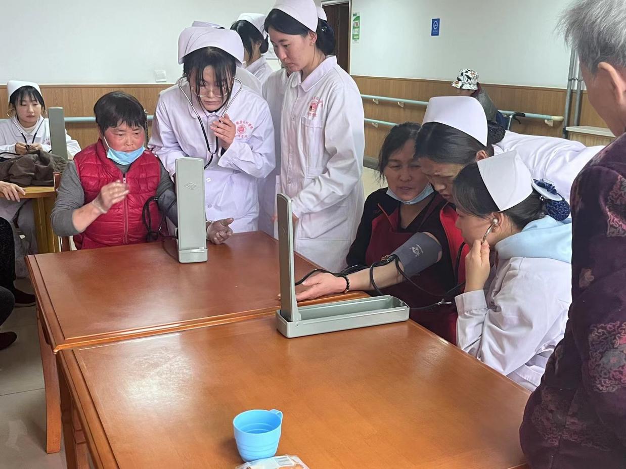 活动中,党支部入党积极分子和入党申请人学生发挥专业特长,为老年人测量血压,并向老年人普及健康知识。志愿者引导老年人关注自身血压健康,注意生活方式和饮食习惯的调整,配合必要的药物治疗,积极预防并控制慢性疾病的发展。