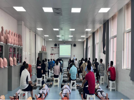为进一步推进“人人持证,技能河南”,提高非医学专业教职员工的自救、互救意识,增进院系间的交流与学习,2022年8月23日上午护理学院教师党支部党员教师侯艳和苏月在护理学院急救实训室对体育运动学院全体教师开展“人人急救”技能培训。