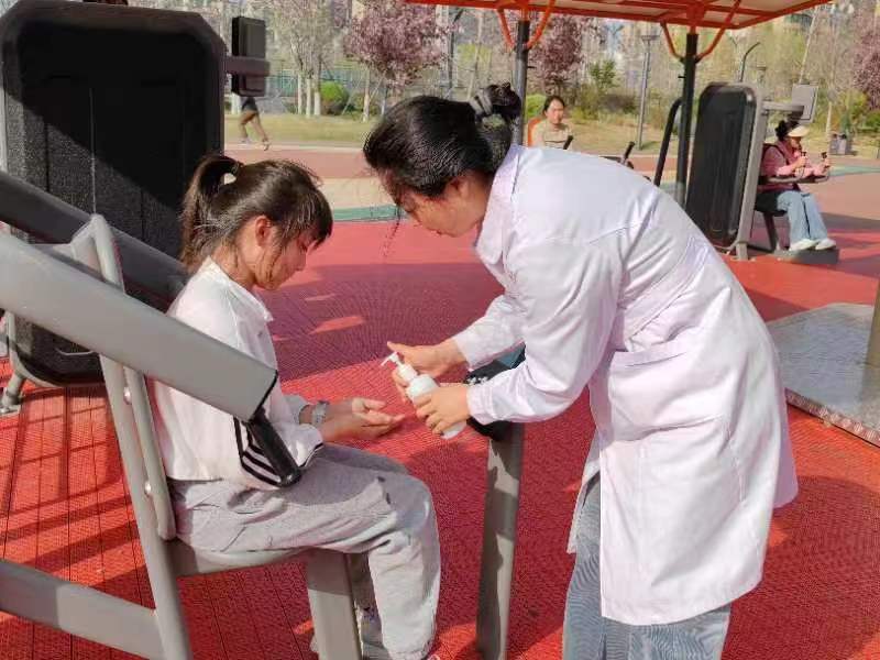为提高公众对手卫生重要性的认识,减少疾病传播,2024年3月31日,护理学院教师党支部成员带领南丁格尔小分队到体育公园开展“七步洗手法”健康宣传活动。