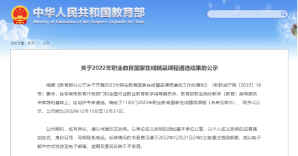 近日,教育部发布《关于2022年职业教育国家在线精品课程遴选结果的公示》,确定了1160门职业教育国家在线精品课程,我院高雅琪老师主持的《急危重症护理技术》(新申报)、王文生老师主持的《手术室护理》(新申报)和赵文慧老师主持的《基础护理技术》(复核)成功入选。