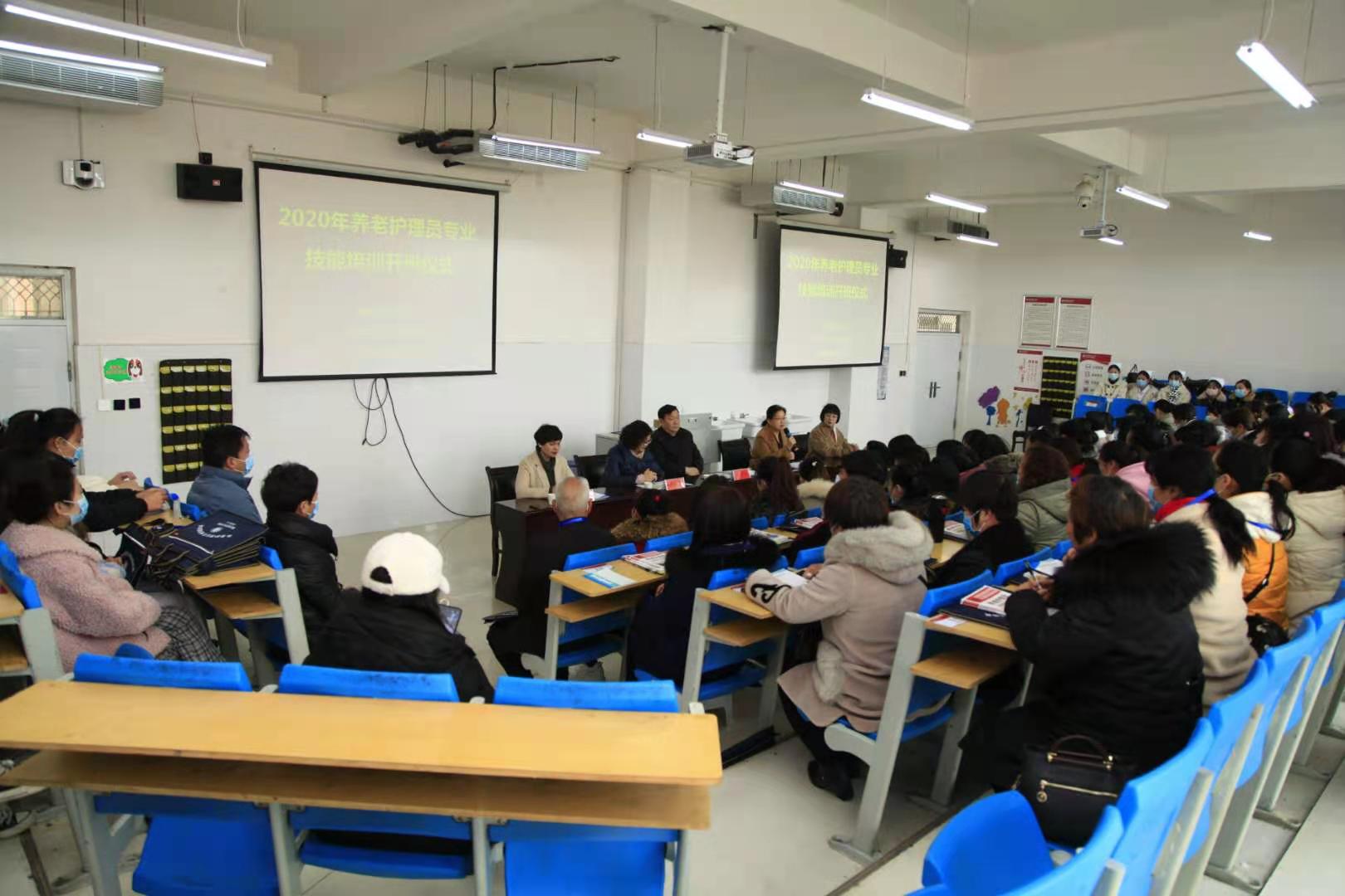 2020年12月7日,鹤壁市养老护理员专业技能培训开班仪式在护理学院A303教室举行。鹤壁职业技术学院党委委员、副院长、护理学院院长李希科,护理学院党总支书记苏丽秋、鹤壁市民政局副局长吴晶敏、市民政局养老服务科科长李清飞及全体学员参加了开班仪式。会议由护理学院党总支副书记周志红主持开班仪式。