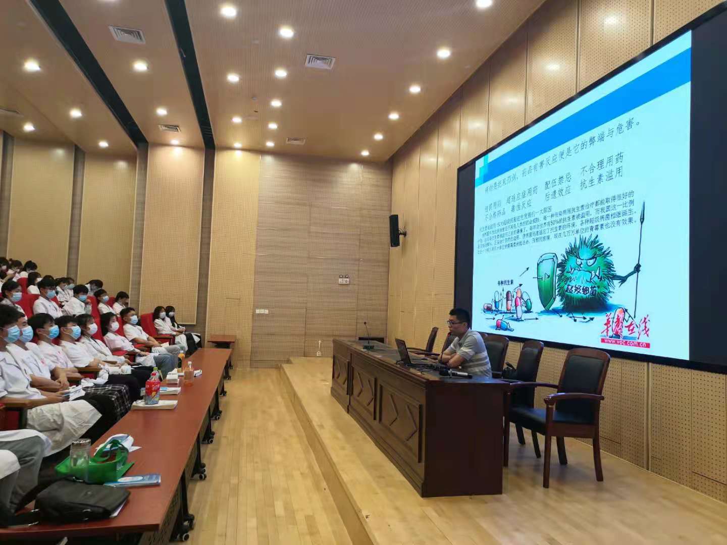 张主任从诸多药品不良反应案例、常见药物使用科普、开展药品不良反应检测工作意义等多个方面进行图片展示和讲解,案例触目惊心,师生深感震撼。