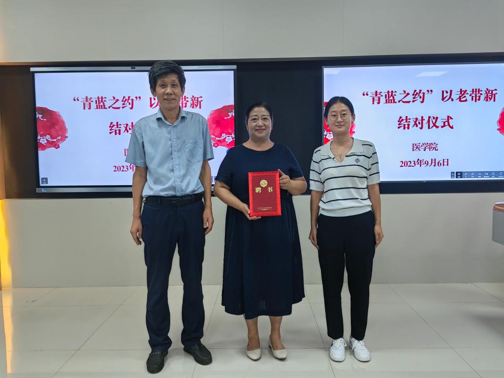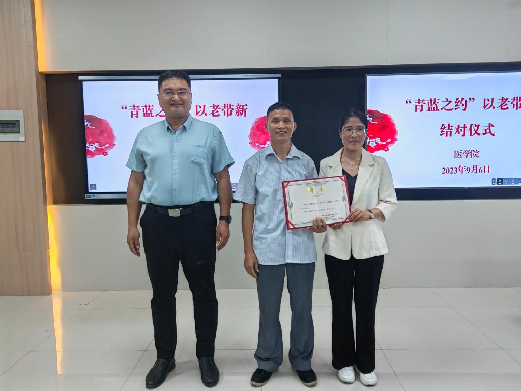 赵成志和杨尚玉共同为12名受聘指导教师颁发聘书,并向12对结对教师表示祝贺,医学院“青蓝之约,以老带新”活动正式启动。