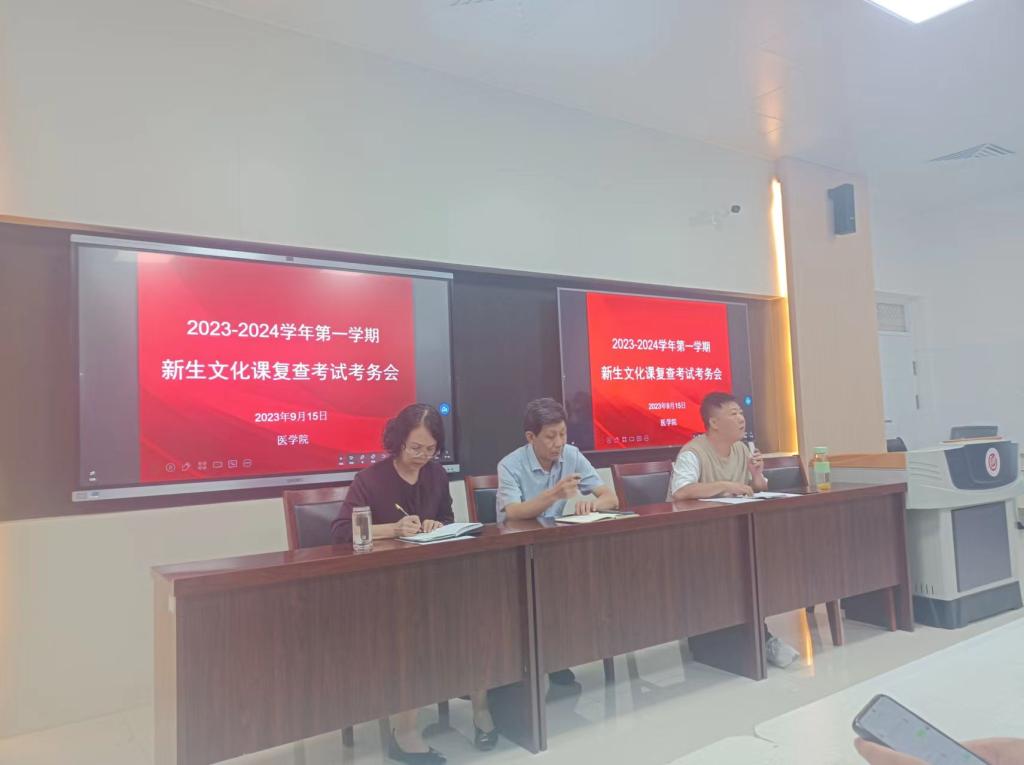 9月15日下午,医学院召开新生文化课复试考务会,医学院院长杨尚玉、副院长刘海燕、教学科研办公室主任宋晓光、全体监考教师和考务人员参加会议,会议由院长杨尚玉主持。
