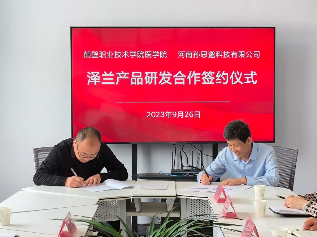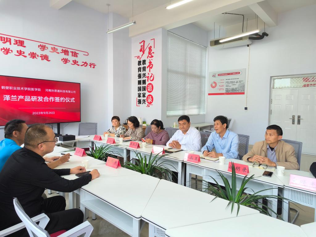 9月26日下午在诚信3号楼D315医学院与河南孙思邈科技有限公司举行泽兰产品研发合作签约仪式。医学院党总支书记赵成志、院长杨尚玉、河南孙思邈科技有限公司总经理张帅民出席本次签约仪式。仪式由赵成志主持。