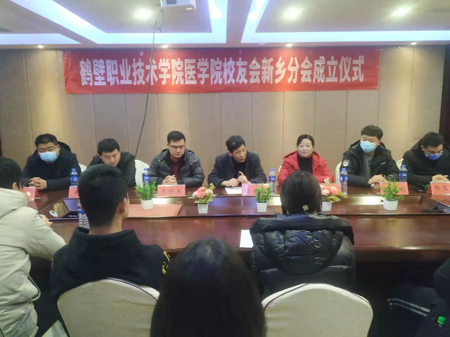 2020年12月20日,鹤壁职业技术学院医学院校友会新乡分会成立大会在新乡市元润大酒店会议室召开。医学院院长杨尚玉、党总支副书记董凯霞、学管办王保军、史鑫老师,以及历届在新乡工作的优秀校友代表参加。会议由新乡分会秘书长靳玉乐主持。