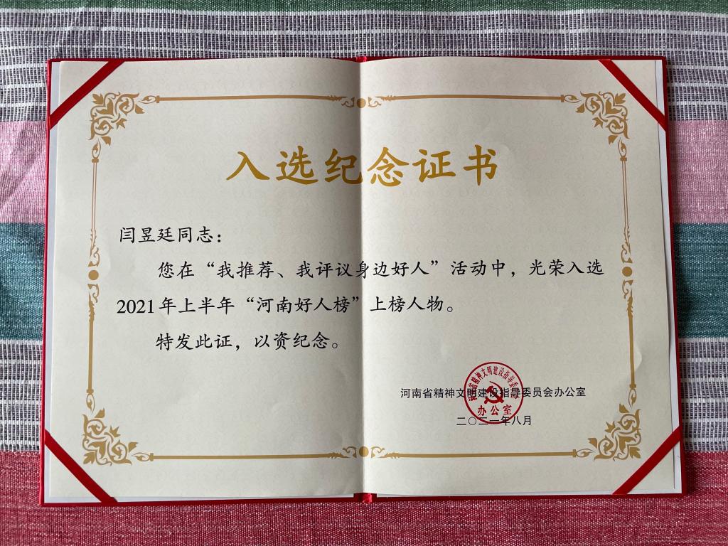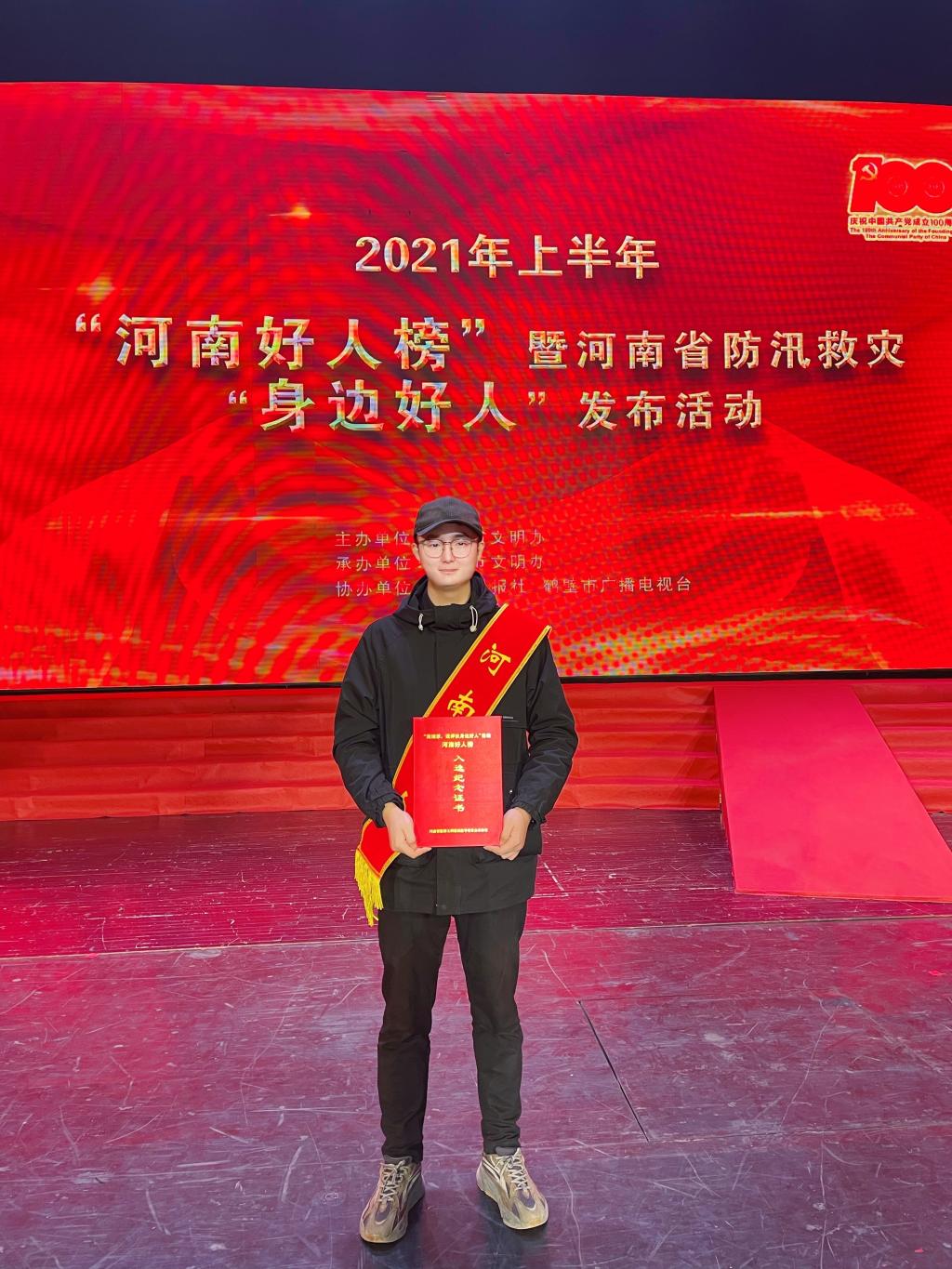 出彩河南人,增辉新时代!10月12日上午,由省文明办主办、市文明办承办,鹤壁日报社、鹤壁市广播电视台协办的2021年上半年“河南好人榜”暨河南省防汛救灾“身边好人”发布活动在鹤壁市艺术中心举行。活动现场发布了助人为乐类、见义勇为类、诚实守信类、敬业奉献类、敬老爱亲类“河南好人榜”上榜人物名单以及河南省防汛救灾“身边好人”名单。鹤壁职业技术学院医学院毕业生阎昱廷同学被评为河南好人。