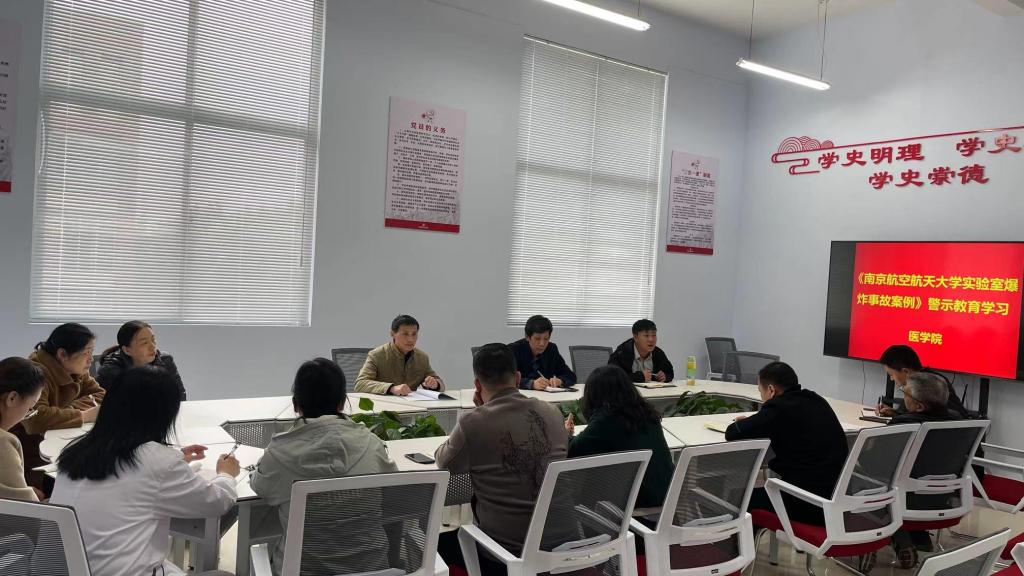 会上,杨院长带领大家对《南京航空航天大学实验室爆炸事故案例》进行警示教育学习。他强调,实验室安全关乎每一位师生员工切身利益,医学院各专业实验室较多,安全管理具有复杂性和多样性等特点。高校实验室发生的安全事故令人痛心,大家一定要引以为戒,加强我院实验室安全管理。他从三个方面对学院实验室安全提出要求。一是思想上要提高认识,高度重视实验室安全管理工作。二是实验室安全责任要落实到位。健全“学院—实验室—师生”三级实验室安全管理责任体系,把责任落实到个人。三是经常对实验室进行安全排查与隐患整改,排查要到位,整改要跟上,确保实验室安全管理取得实效。