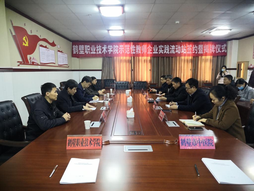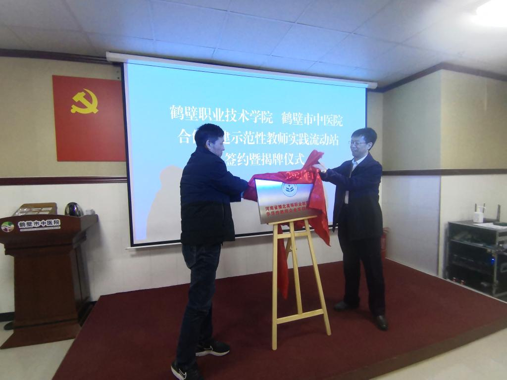 随后,医学院院长杨尚玉与鹤壁市中医院院长秦献普签订合作协议,鹤壁职业技术学院副院长杨长春与鹤壁市中医院党委书记秦志杰为鹤壁职业技术学院示范性教师实践流动站揭牌。