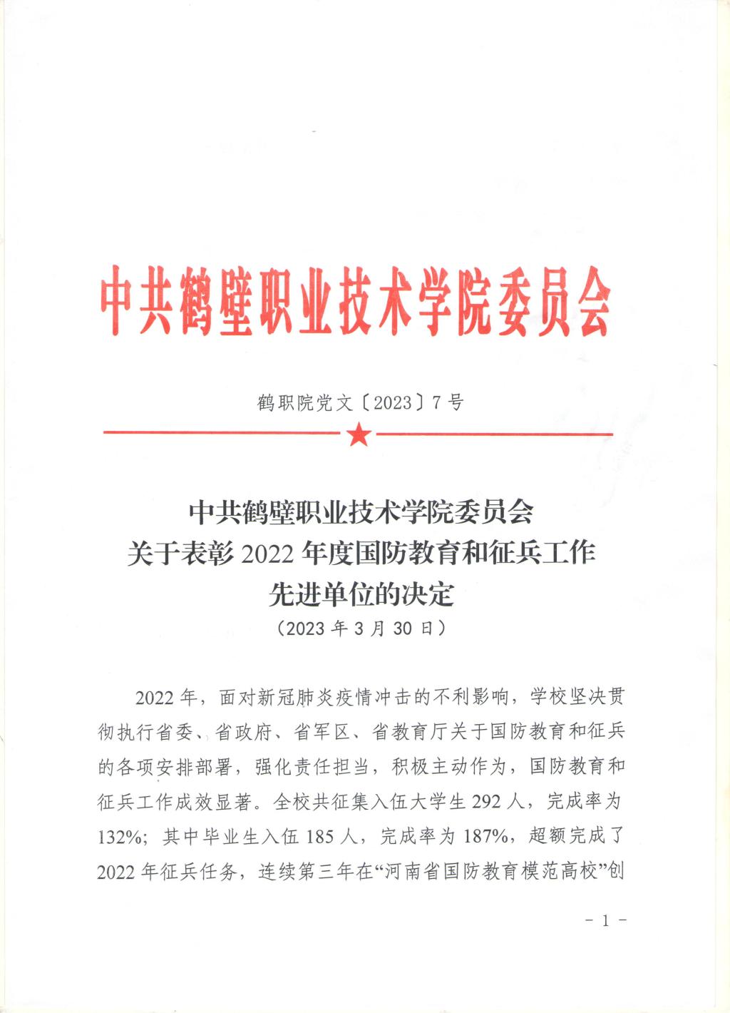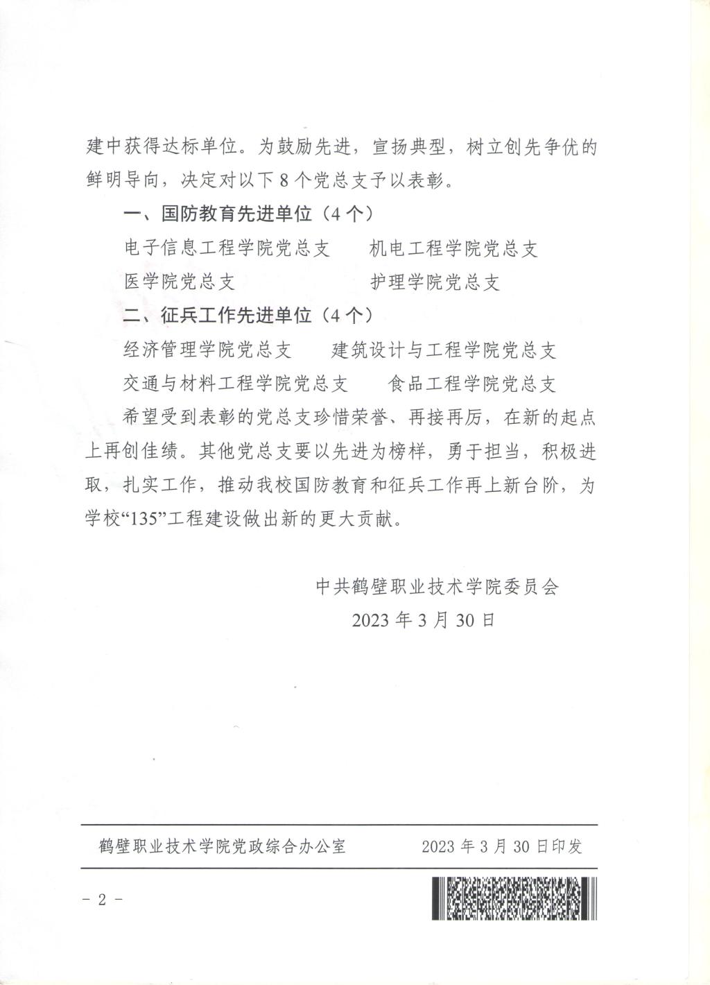近日,学校征兵工作领导小组召开2023年度征兵工作会议,对全校征兵工作进行安排部署,对2022年度国防教育和征兵工作先进单位进行表彰。医学院获评“国防教育先进单位”。