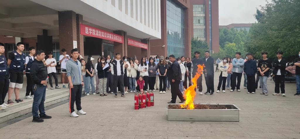为进一步推进“5月火灾警示月”及防灾减灾日宣传工作。5月25日下午,医学院邀请学校安全保卫处连宏宇科长及工作人员在诚信三号楼前进行消防知识讲解及演练。医学院院长杨尚玉、副院长刘海燕、徐明录及部分教师和100余名学生参加。