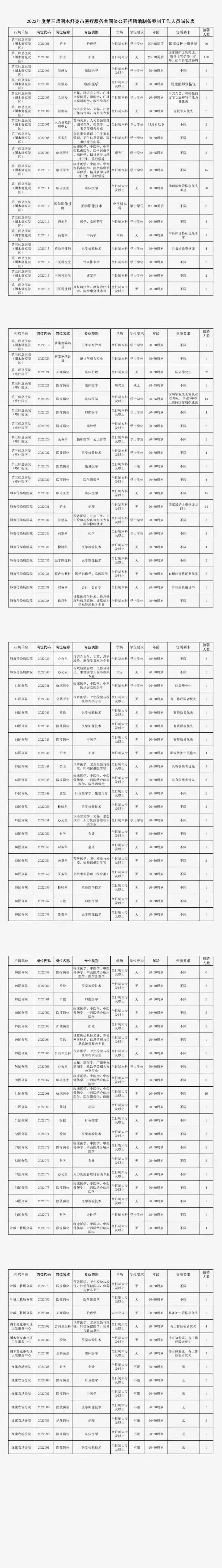 四、2022度第三师图木舒克市医疗服务共同体公开招聘编制备案制工作人员岗位表