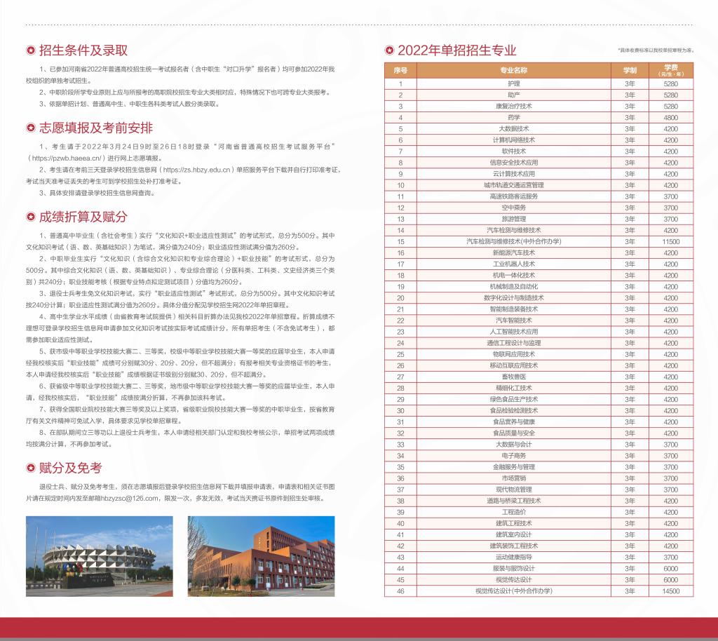 鹤壁职业技术学院2022年单独招生章程