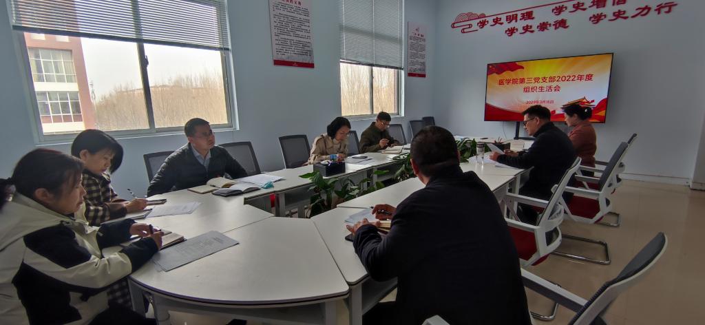 2023年3月14日,医学院第三党支部在D315召开了2022年度组织生活会,支部全体党员参加会议,会议由支部书记王保军主持。