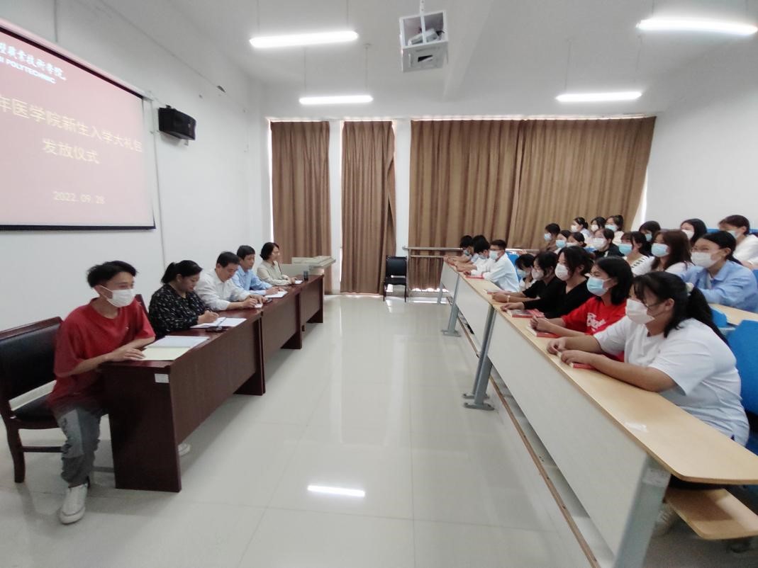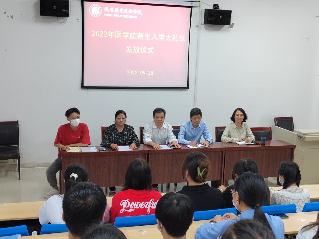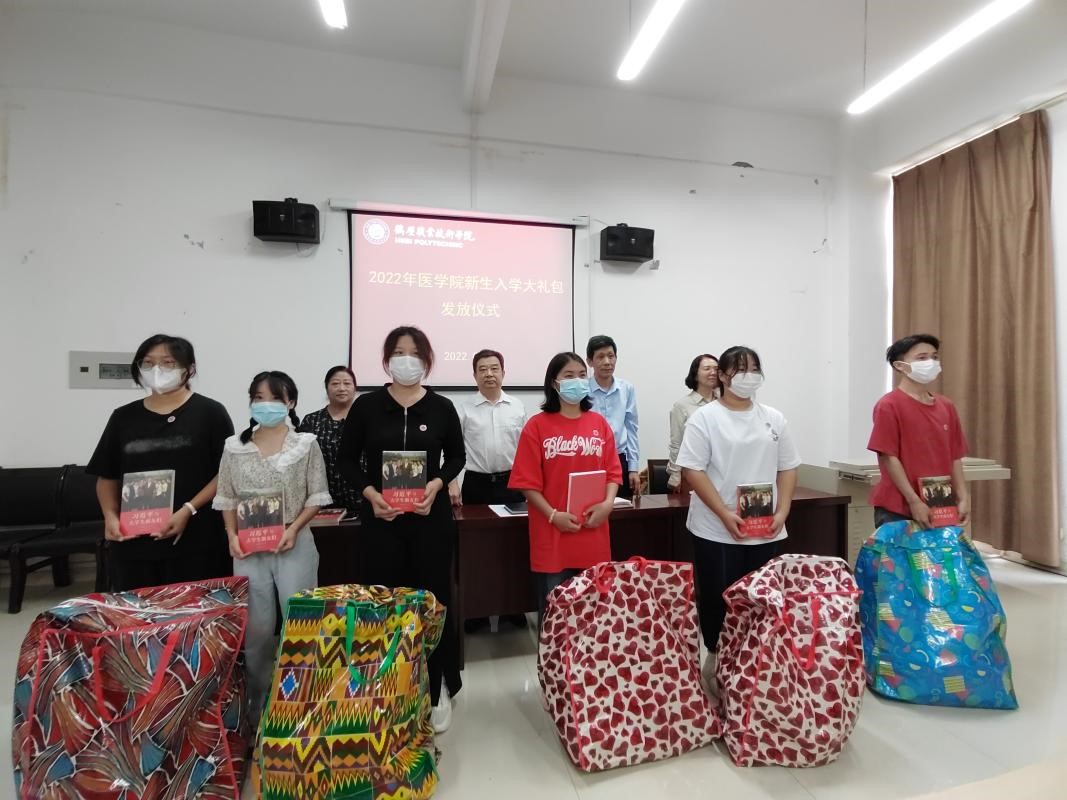 活动开始,医学院党总支书记李宏伟代表医学院为2022级57名学生发放新生入学大礼包,大礼包中有生活日用品、学习用具,还有一本《习近平与大学生朋友们》。他勉励同学们珍惜校园生活和学生生活,懂得感恩,感恩父母和帮助自己的人、感谢国家和学校的扶贫政策、感谢我们生活在中国发展的时代,拥有这个和谐、美丽、文明的新生活,要励志好学、奋发图强,坚守初心,砥砺前行,做栋梁之才。站在喜迎党的二十大的新的起点上,不负韶华不辱使命,用勤奋和拼搏去书写属于自己的青春年华!